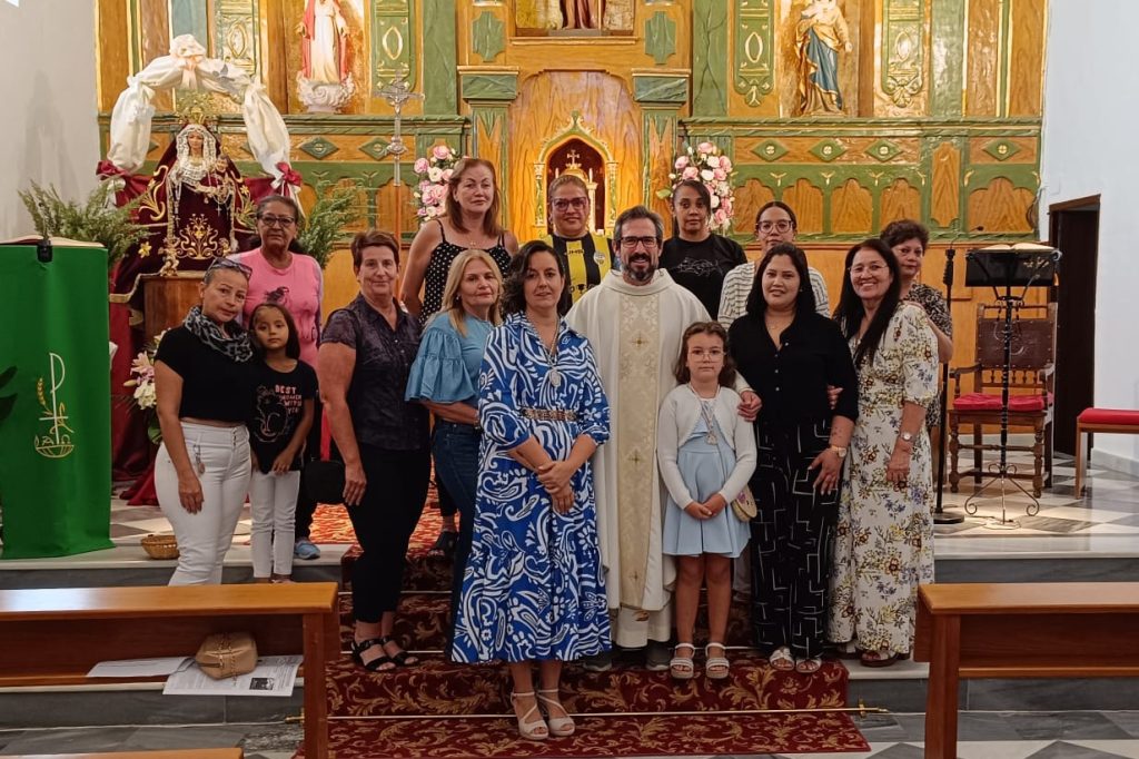 Sabiendo que nuestra Madre María del Rosario acoge a sus hijos e hijas de todo el mundo, especialmente a quienes enfrentan mayores dificultades, se invitó de modo especial a familias vecinas del pueblo procedentes de distintos países. Así participaron personas venidas de Venezuela, Colombia, Paraguay y Holanda, entre otros lugares.