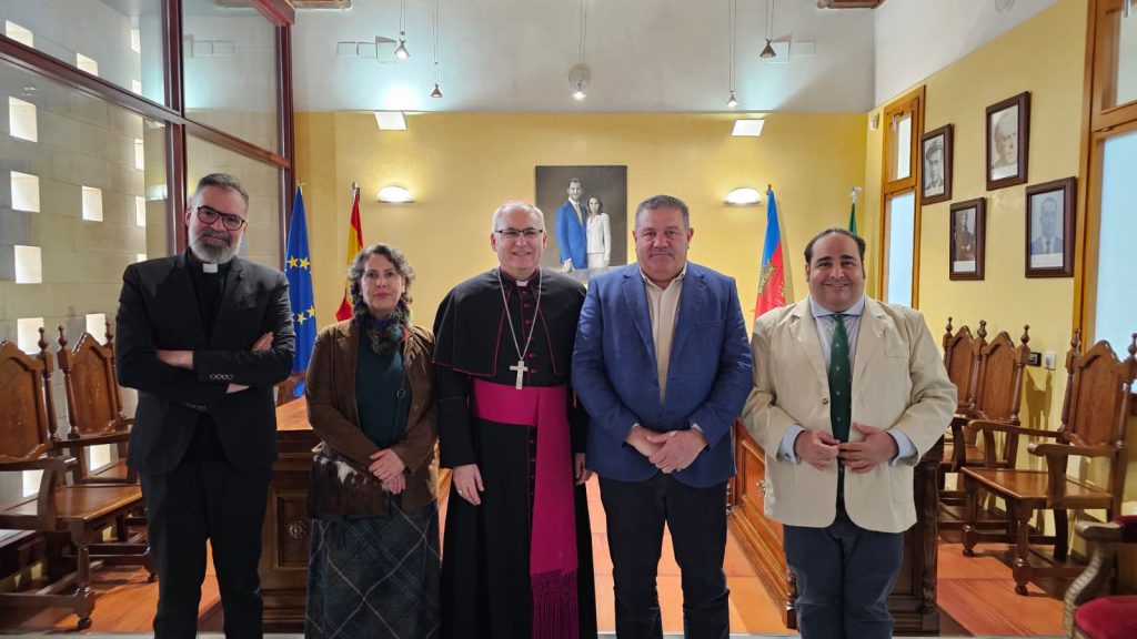 Una vez recibida la bendición del Obispo y tras orar en comunidad por los frutos de la visita, el Obispo fue recibido por el Alcalde, D. José Mena, y algunos concejales en el Ayuntamiento. El Alcalde mostró su preocupación por el estado de la parroquia y se comprometió a ayudar y agilizar todos los trámites que desde el Ayuntamiento fueran necesarios. Asimismo, en el salón de plenos explicó la situación social, laboral y económica del municipio. El Obispo, por su parte, mostró su voluntad de ayudar y de crear lazos institucionales entre la Iglesia y el Ayuntamiento.