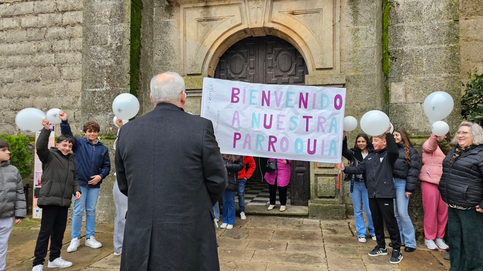La visita comenzó con la acogida del Prelado por parte del párroco y un nutrido grupo de fieles en la Iglesia de la Colegiata de Santiago, ya que el templo parroquial se encuentra cerrado debido al lamentable estado de la techumbre, que incluso amenaza con derrumbe.