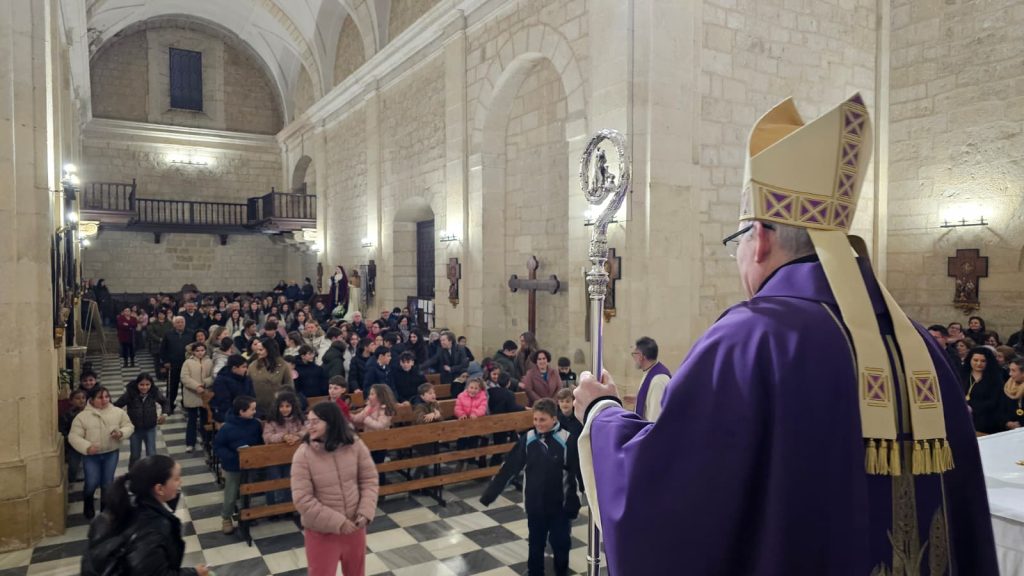 Un acto entrañable tuvo lugar en el templo de la Colegiata de Santiago cuando el Obispo se reunió con todos los niños de la catequesis del pueblo. El templo se llenó de vida en una catequesis impartida por Don Sebastián, centrada en el amor de Dios que se manifiesta en la Cruz de Cristo. Cada grupo dio la bienvenida al Prelado, quien bendijo a los presentes y animó a los catequistas y al párroco a formar un grupo Kairós para los jóvenes de post-confirmación.
