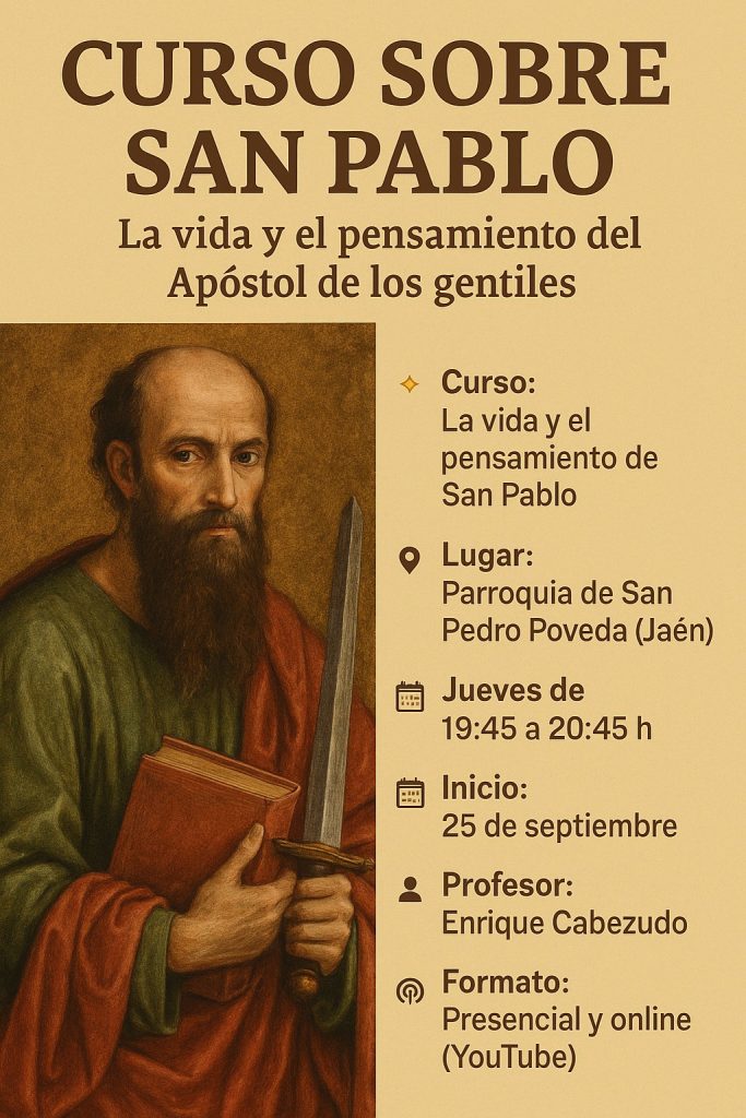 La parroquia de San Pedro Poveda organiza un curso sobre “La vida y el pensamiento de San Pablo”, que impartirá el sacerdote y profesor, D. Enrique Cabezudo de manera presencial en la parroquia de San Pedro Poveda y online a través del canal de YouTube de la parroquia.