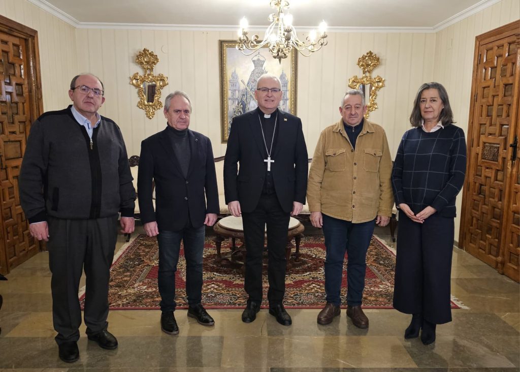 La reunión, programada desde hace semanas, tuvo lugar en el obispado y acompañaron al delegado D. Pedro Montesinos Moya, consiliario de la Pastoral del Trabajo, y el resto de los miembros del equipo: D.ª Mariola Medina Criado, Francisco Cruz Lendínez y Carlos Pinilla Ruiz.
