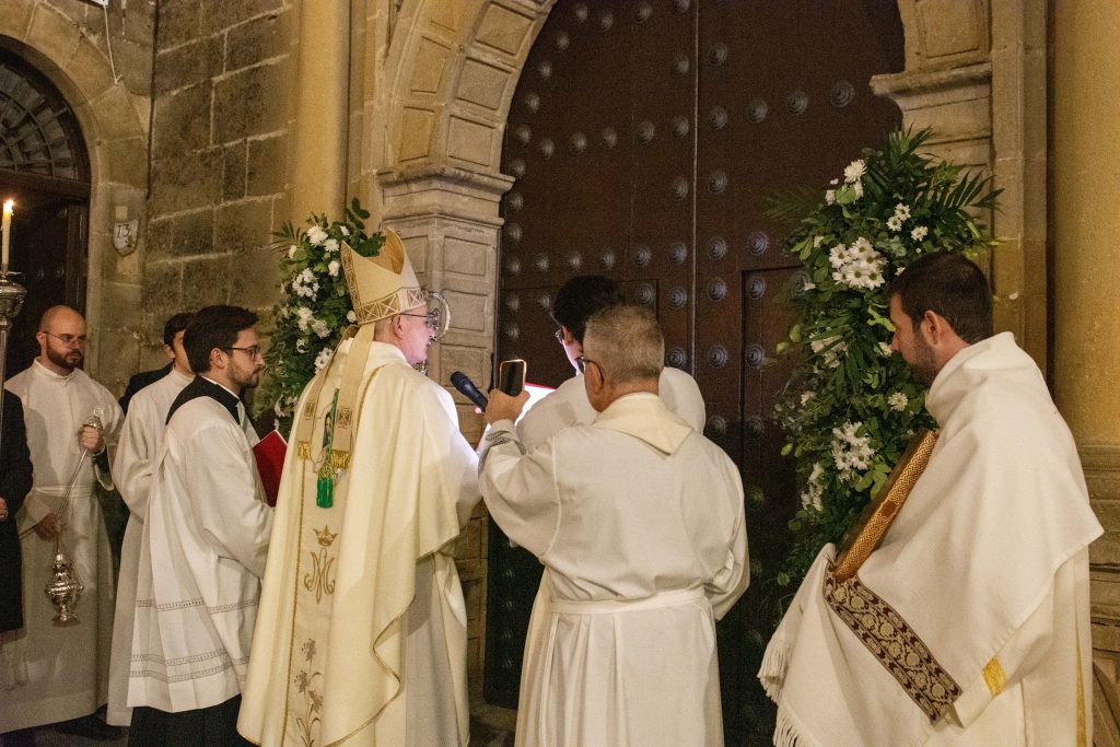 Hasta la ciudad de los Cerros se desplazó Monseñor Chico para esta apertura del Año Jubilar. La celebración comenzó a las 19:30 en el templo parroquial de la parroquia de Santa María de los Reales Alcázares y San Pablo. Allí comenzó el ritual, para, a continuación, ir en procesión hasta las puertas del Oratorio del convento Carmelita, donde el obispo abrió la Puerta Santa.