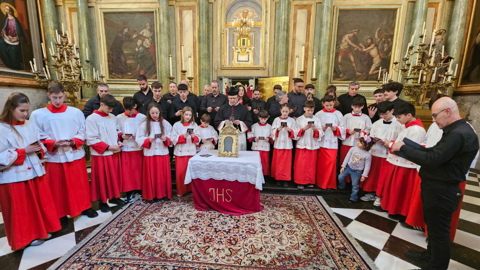 Tras la celebración eucarística, la Capilla Musical Los Seises, junto a los fieles allí presentes, pudieron venerar el Santo Rostro en la Capilla Mayor.