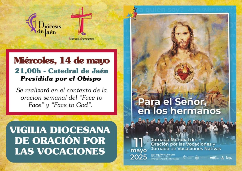 Con el lema “Para el Señor, en los hermanos”, queremos mirar al Corazón de Cristo y responder con generosidad a su llamada, para pedir al Dueño de la mies que envíe obreros a su mies. Esta Vigilia Diocesana.