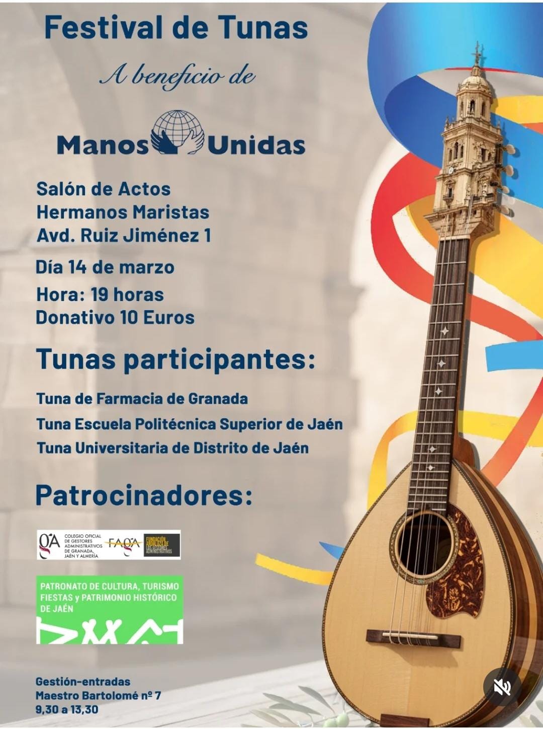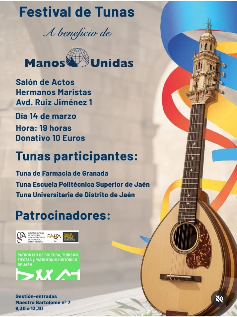 Este sábado, 14 de marzo, el Colegio de los HH. Maristas de Jaén acoge el Festival de Tunas, cuyos benefecios irán destinados a Manos Unidas Jaén.