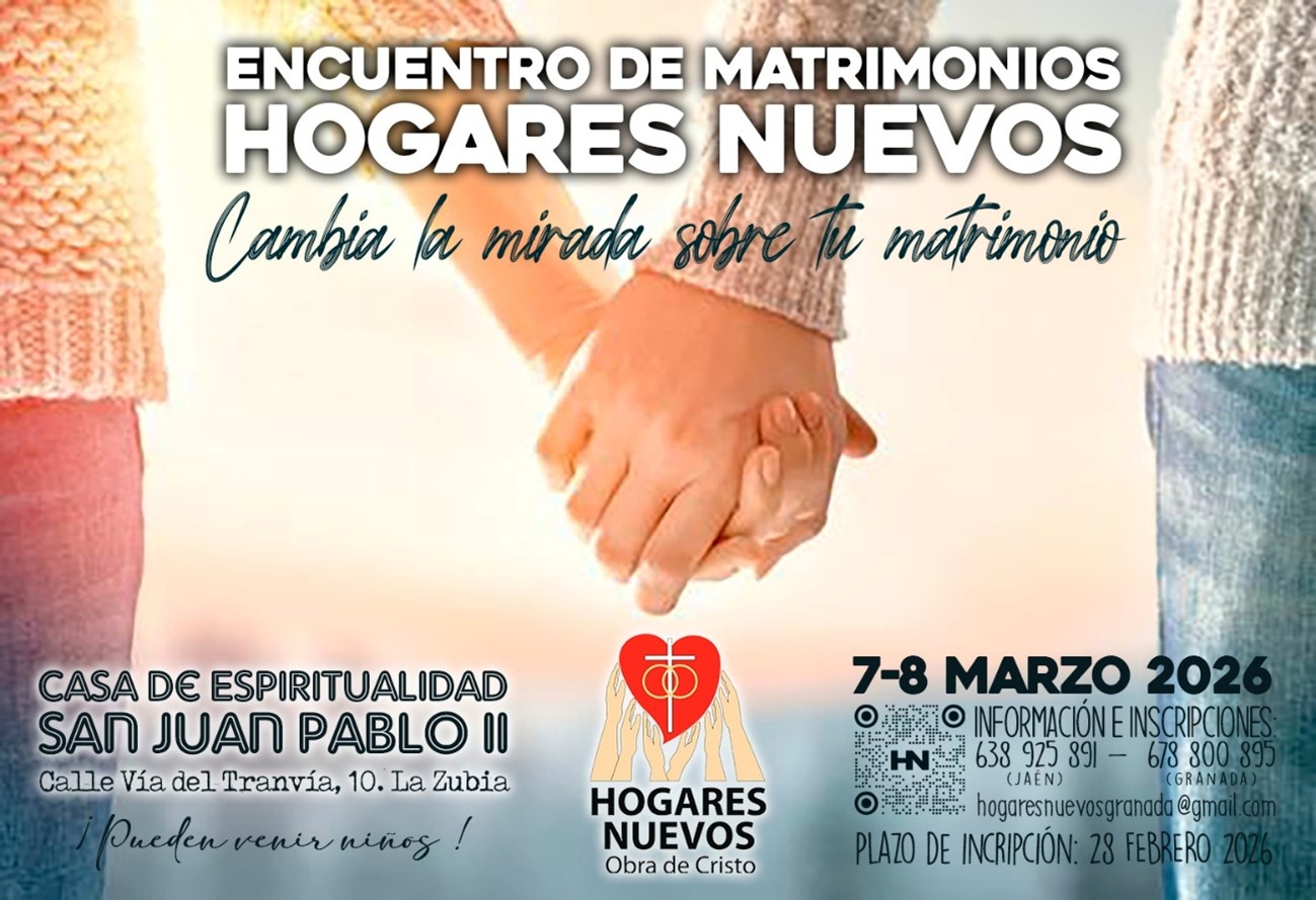 El movimiento Hogares Nuevos organiza el fin de semana de 7 y 8 de marzo, un retiro para matrimonios, en la Casa de Espiritualidad Juan Pablo II de La Zubia, en Granada. Un tiempo para reencontrarse, reafirmar el “sí” y poner a Cristo en el centro
