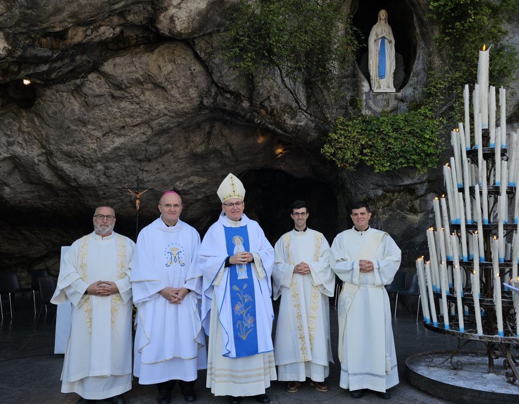 El Obispo de Jaén, Monseñor Chico Martínez, se unía a la peregrinación y a los enfermos y hospitalarios y estará acompañándolos hasta el final del viaje. Este martes ha presidido en la gruta de la aparición la Eucaristía, acompañado de otros obispos y de los sacerdotes diocesanos y los dos diáconos que participan, también, de este encuentro.
