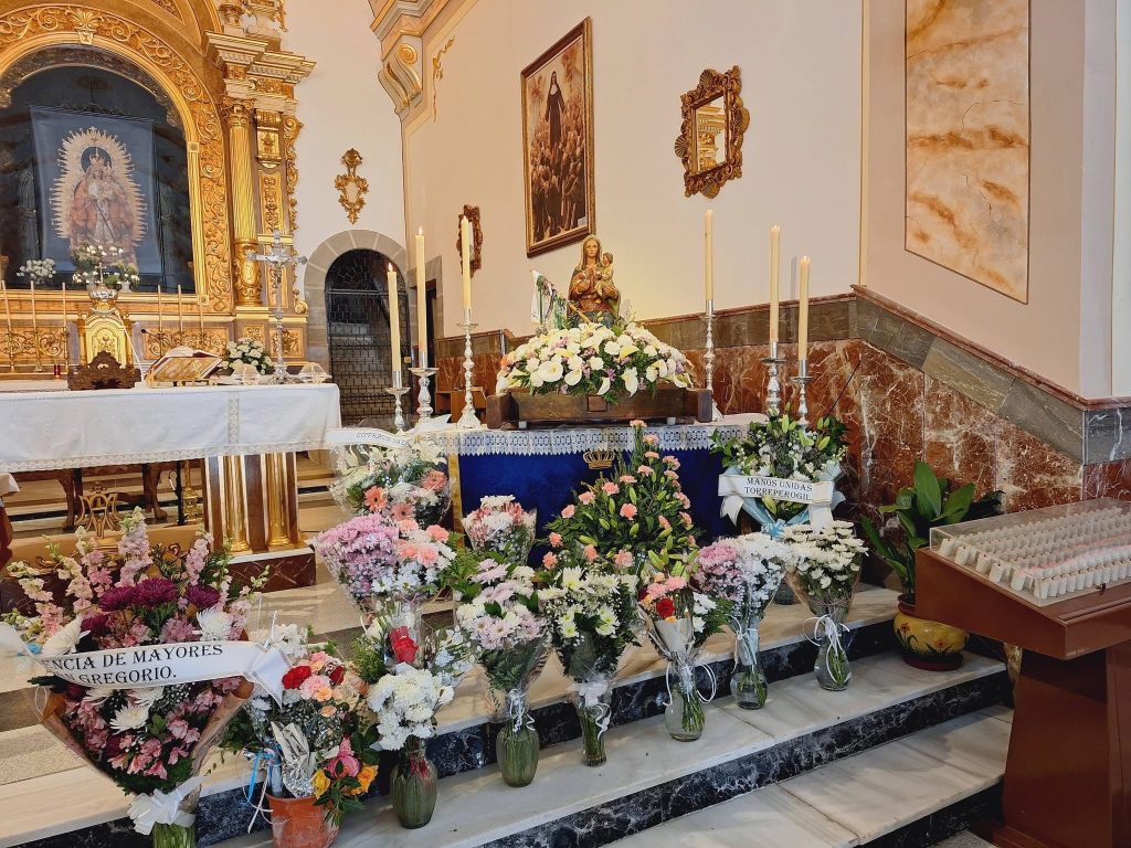 Uno de los momentos más destacados de la mañana tuvo lugar a las 11:00 horas, con la ofrenda floral a la Virgen de la Cabeza,  en la que participaron numerosos fieles portando flores, ramos y centros, como muestra de cariño y devoción. En este acto tan significativo se sumaron también los residentes de la Residencia de Mayores de las Hermanas de los Desamparados y la Residencia de Mayores San Gregorio, de la localidad, cuya presencia aportó un profundo valor emocional a la celebración. A continuación, se celebró la Santa Misa, vivida con especial intensidad por todos los asistentes.