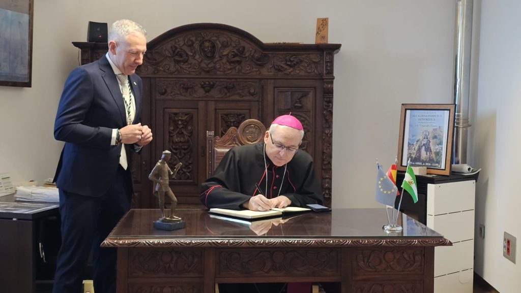 El pasado domingo, 19 de abril, nuestro Obispo Don Sebastián Chico Martínez, a las 10:30 horas, era recibido en la puerta del Ayuntamiento por el párroco del lugar, junto con el alcalde, algunos miembros de la corporación municipal y la secretaria del Ayuntamiento, donde el Obispo firmó en el libro de honor dejando constancia de este acontecimiento tan esperado por todos los habitantes de este pueblo de la Sierra de Segura.