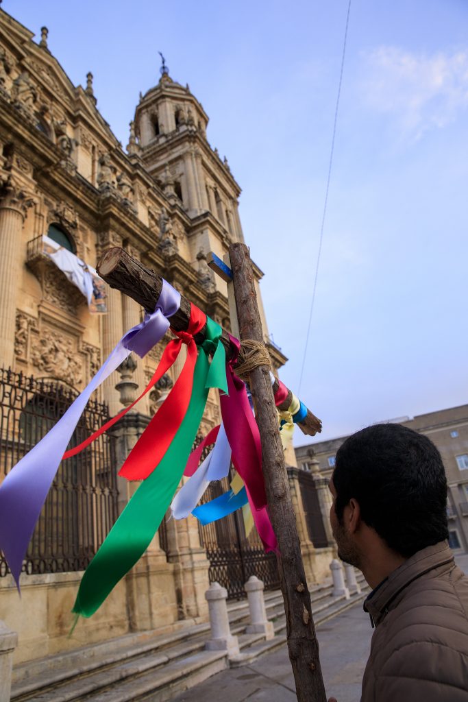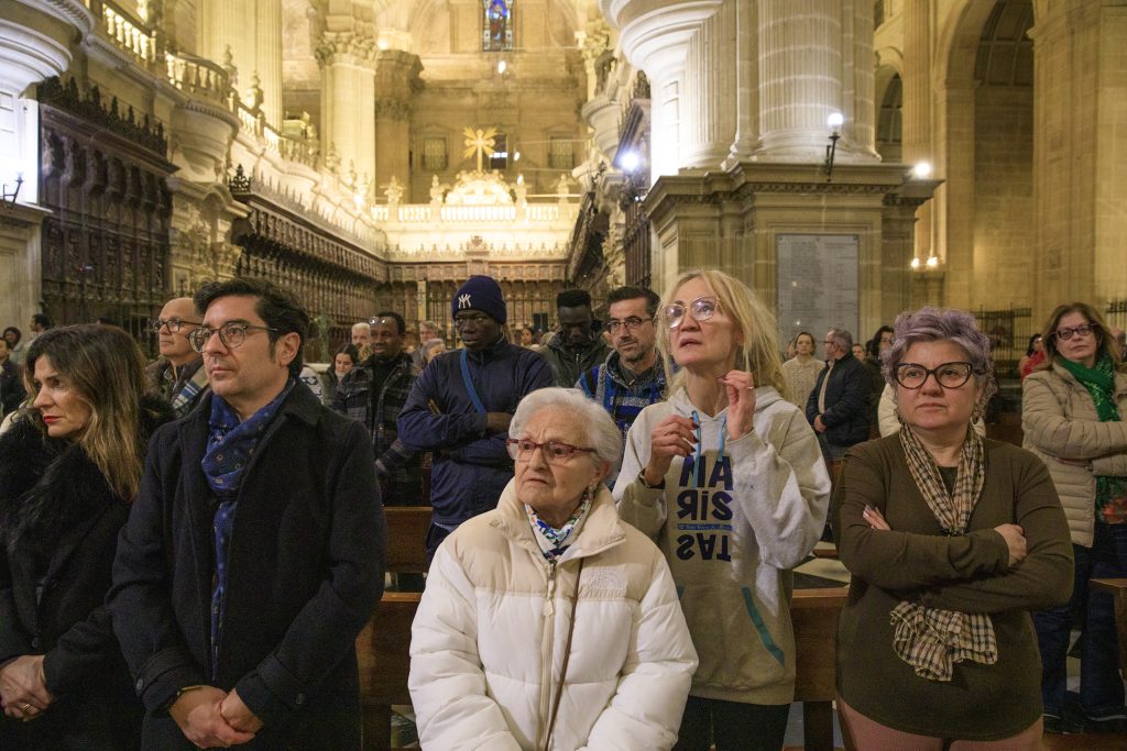 Bajo el lema «Migrantes, misioneros de esperanza», daba comienzo la peregrinación hasta el templo jubilar, la Catedral. Cristianos y personas de otras religiones quisieron unirse a esta marcha, que la abría una humilde cruz, hecha con dos palos de madera atados con una cuerda y adornada con lazos de colores, en la que iba incrustada otra cruz más pequeña, elaborada con madera de la cruz de Lampedusa, que nos visitó en 2019, y utilizada habitualmente en los vía crucis migrantes.
