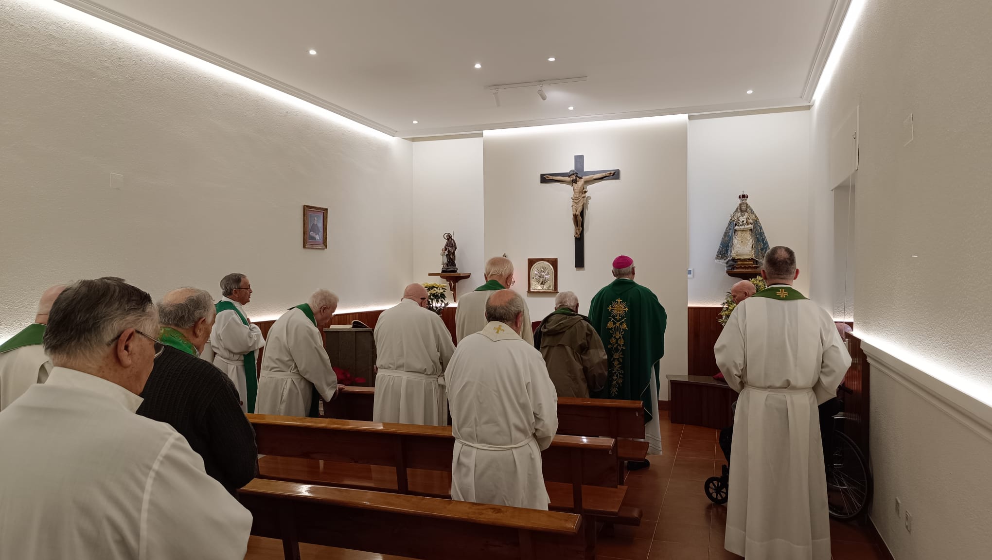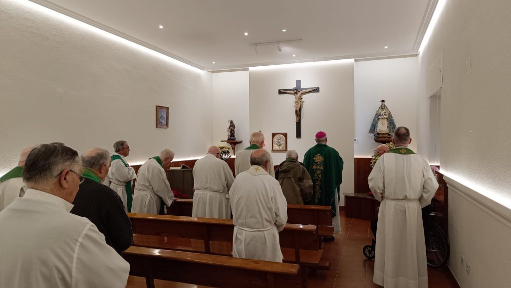 La celebración de la Eucaristía estuvo presidida por nuestro Obispo, Don Sebastián Chico Martínez, que acompañó a los sacerdotes en el encuentro. En la homilía, dirigió a los sacerdotes una llamada a asumir con serenidad los límites propios de la edad, sin resignación ni amargura, aprendiendo a dejarse ayudar y a confiarse plenamente en las manos del Señor. Subrayó, asimismo, el valor pastoral de la ancianidad vivida con humildad, destacando que el testimonio silencioso y discreto de los sacerdotes mayores sigue siendo fecundo y eficaz, incluso cuando pasa desapercibido.