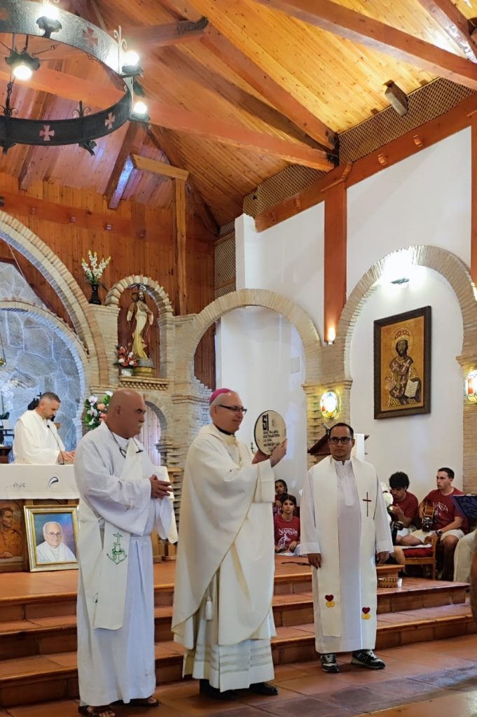 Después del encuentro, Don Sebastián subió al templo de El Centenillo para celebrar la Eucaristía con los acampados y con los feligreses del pueblo, acompañados, también, por un numeroso grupo de miembros de la comunidad cristiana de La Carolina, que se desplazaron a esta parroquia perteneciente a la misma unidad pastoral para unirse a la celebración de la Eucaristía con el Pastor de la Diócesis.